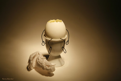 Terry uses everyday objects and humanises them by giving them little wire arms, legs or whatever it may be, then puts them in various poses and photographs them. These may not be on a par with anything by Rodin or the likes but nevertheless they are fun and are sure to make you smille.