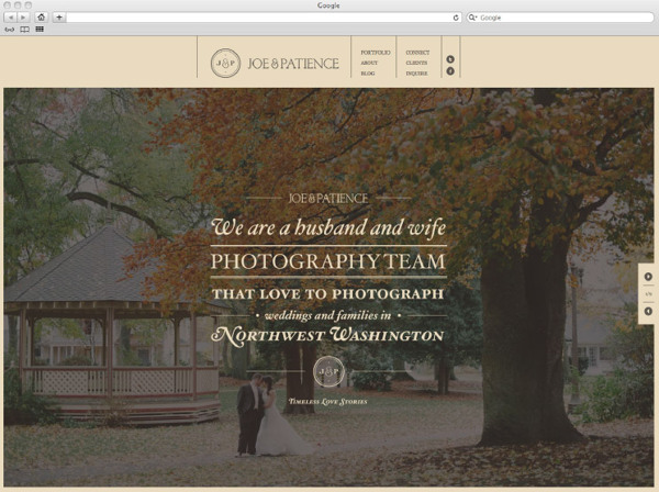 Designed for Wedding Photographers Joe & Patience, who use vintage cameras as well as digital, this classic yet modern website is a great example as to how it should be done.